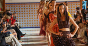 ‘Mediterranean fashion week’ is well and truly under way, the most spectacular evening to start the calendar of shows across this weekend. Opening with a beautiful homage to Mediterranean culture as a show of dancers took over the Plaza de la Virgen, in a traditional dress of Valencia called ‘traje de fallera’. The staging was a declaration of love for the land. The popular group ‘Les Folies de Carcaixent’ presented “A L’aire“, a show that marks a Valencian flavour, showcasing exquisite and passionate dancing. On the whole, it was an emotive performance, uniting art, culture and fashion in a unique visual symphony.
