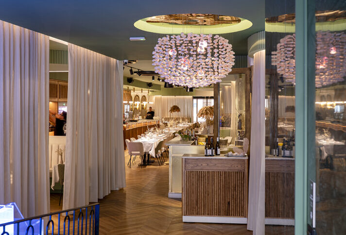 After the renovation of ‘Puerta del Mar’, one of the main attractions for diners has become the cocktail bar, where a carefully curated selection of cocktails and spirits is offered, complemented by a wine cellar that features exceptional reds, and a fridge stocked with delicious whites and cavas. The cocktail bar, crafted in polished brass, creates a subtle contrast between sophistication and warmth, becoming an elegant yet welcoming environment to unwind.