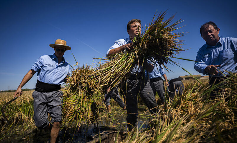 While the farmers harvest the rice field, the Cant de Batre (song) competition will take place. This is the work song that Valencian farmers used to sing during the long days of harvesting. It is a vocal song sung without musical accompaniment to keep the work going. The competition will have two rounds and different participants from the Valencian Community. Once the harvesting is complete, the President of the Regulatory Council, accompanied by the farmers, will present the award to the Honorary Reaper of the year. This year, the award is given to Valencian actor Arturo Valls, who recently entered the world of rice with his brand “Socarrón,” which bears the quality seal of the Valencian Designation of Origin (D.O.) and is grown in the Albufera Natural Park. “Not only has he just taken the plunge with his brand, but he also boasts his Valencian identity wherever he goes,” explains Santos Ruiz, manager of the Valencian Rice Designation of Origin (D.O.).